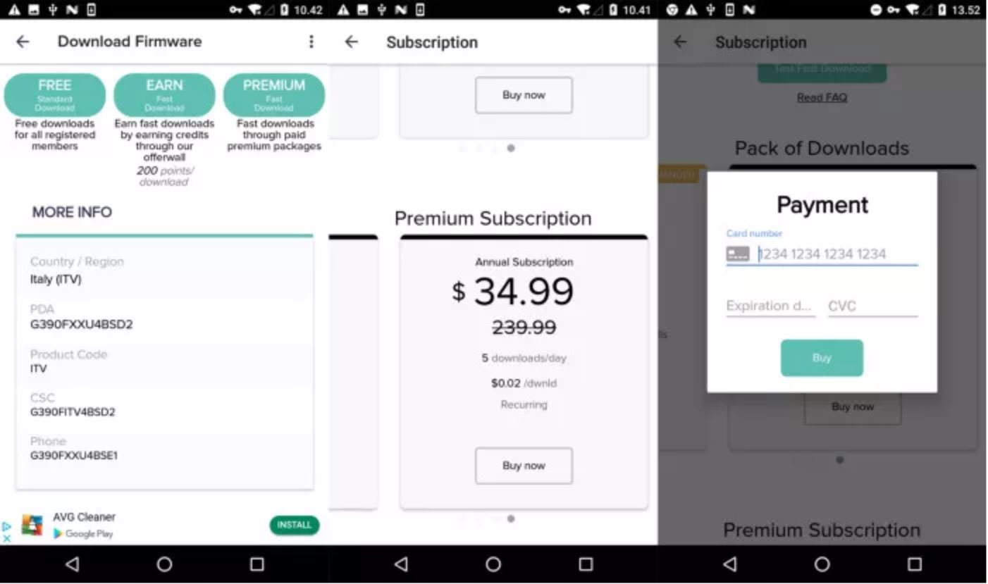 Installing a firmware/update-manager for your phone helps to ensure your phone is secure. However, for 10 million Samsung smartphone users, this has become the complete opposite. Aleksejs Kuprins, a malware analyst at CSIS Security Group, revealed how an app called “Updates for Samsung” has been installed by over 10 million users directly from the Google Play Store. The app promises free firmware updates but redirects users to an ad-filled website and asks for money to install the updates. This $34.99/year service, which is supposed to be free, doesn’t use the Google Play Store to manage the subscription. Instead, it uses a separate payment processing system to pay the fee. The download speed is also restricted to 56 Kbps and asks users pay more money for faster speeds or premium packages. Kuprins also noted that free downloads almost always failed to complete. Overall, the app is not doing what it’s advertising to do.