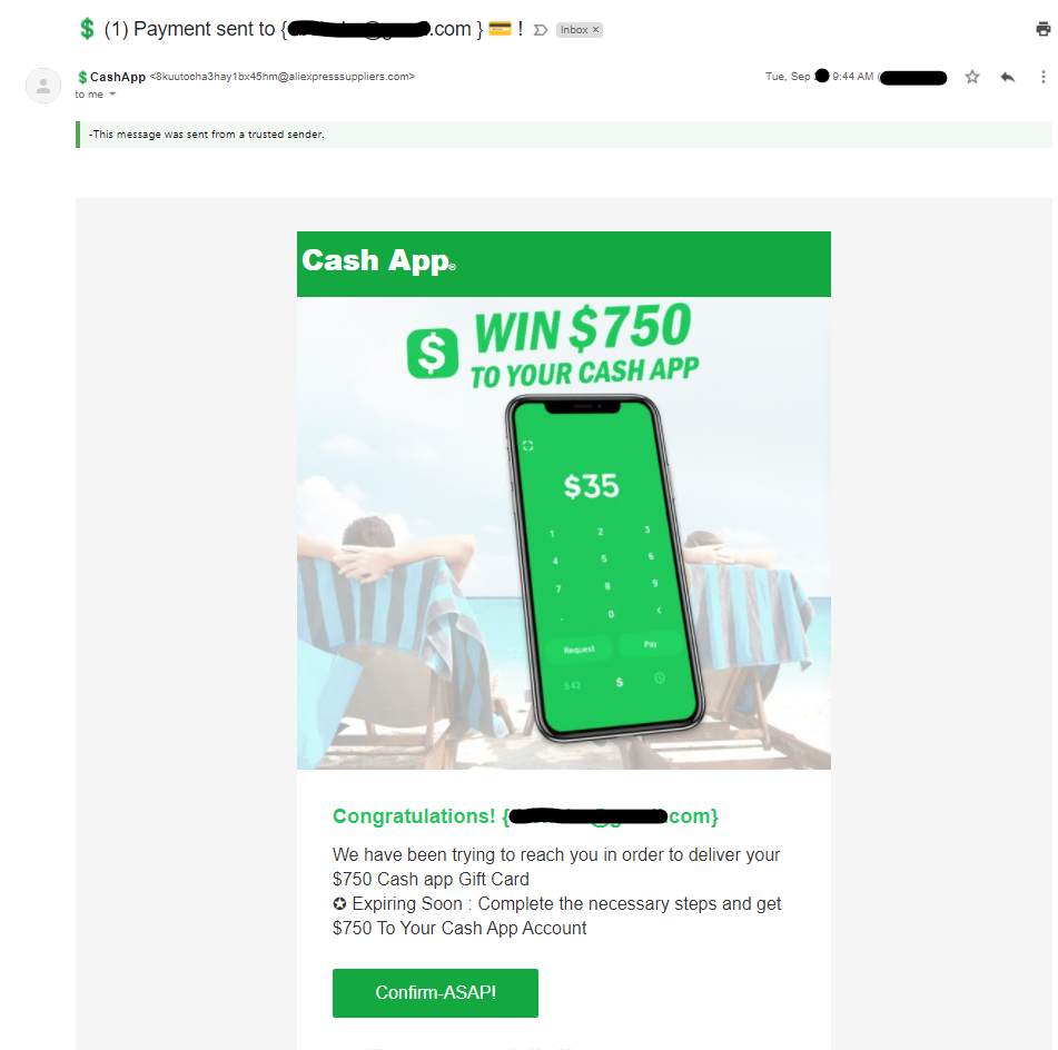 - The final warning sign for this email is the callouts at the bottom. This message says that my reward is expiring soon although this is the first notice we’ve received about this payment. An easy way to spot a scam email is to reference previous emails you’ve received from the company. When compared to other correspondences from Cash App, this email immediately looks different.