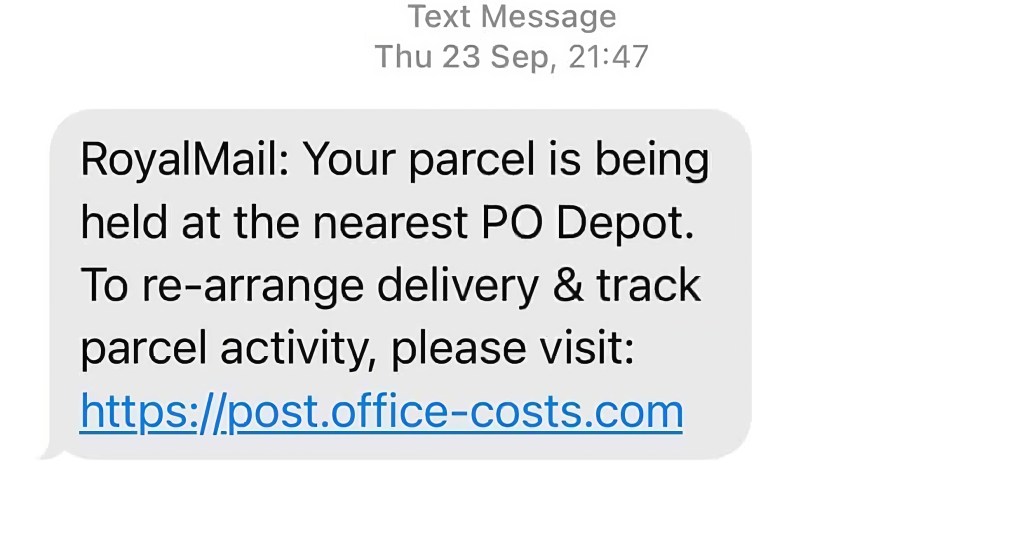 - The first warning sign for this SMS is the fact that it includes a URL in the message. Typically, companies will send notifications like this through SMS, but they’ll end with a call to action within an already trusted environment, for example the statement “check your tracking details for more information.” Always be sure to think twice and check “urgent” statuses like this one through a trusted environment, and never click on links sent through an SMS from an unknown number.